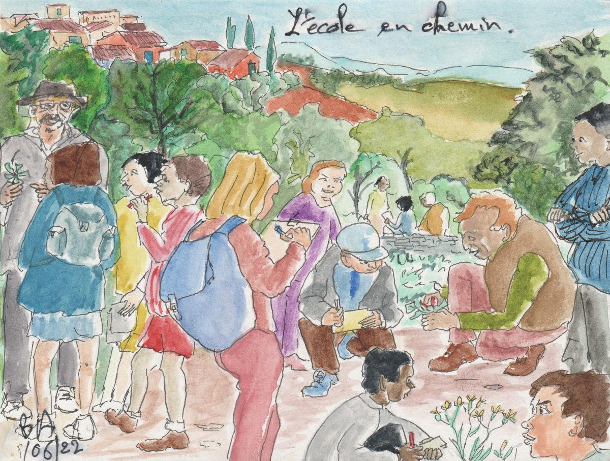 Comme un carnet de voyage dans le temps autour de l'école entre les années 2020 et les débuts des temps du COVID et les années 2022 avec la chute des masques et les premières sorties prudentes.